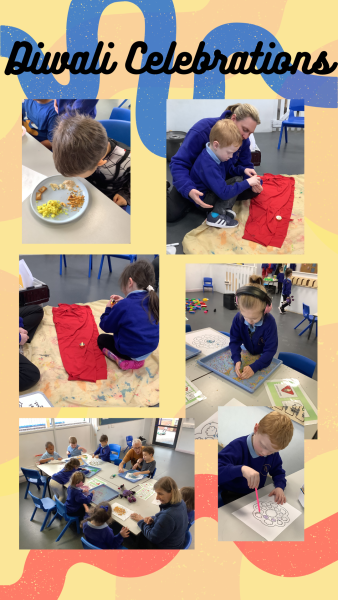 In class we have been reading Bindi's Diwali, we learnt that Diwali is the festival of light and completed lots of activities relating to Diwali. Those activities included creating Rangoli patterns, listening to music and creating our own lights. We also sampled some traditional food that is often consumed during Diwali.