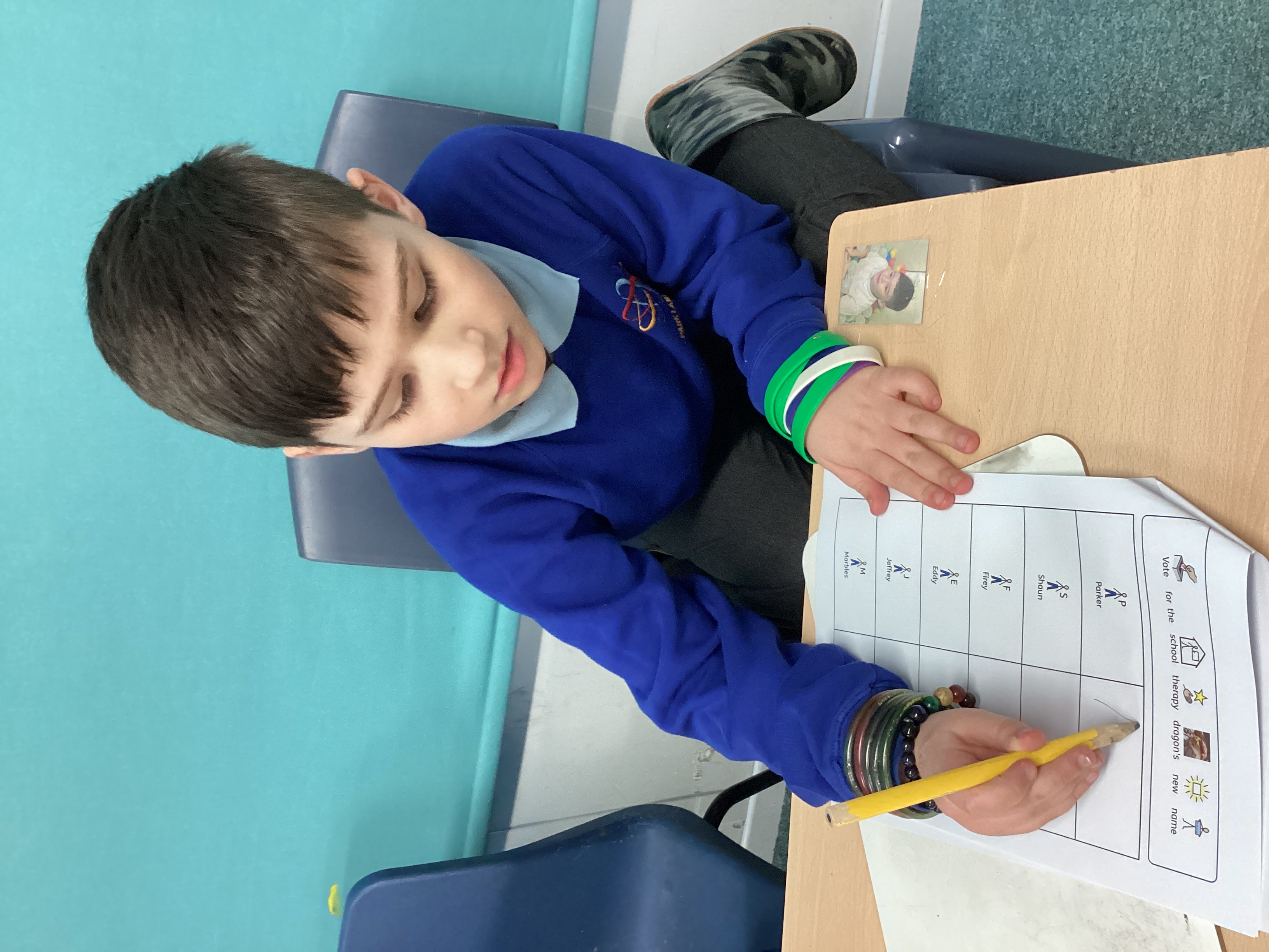 The whole school were invited to vote for the name for our school therapy bearded dragon. Every pupil was given the opportunity to vote and the votes were counted so that they results could be revealed in assembly. The pupils were taught about the democracy of the winning total dictating the choice which was Marbles.